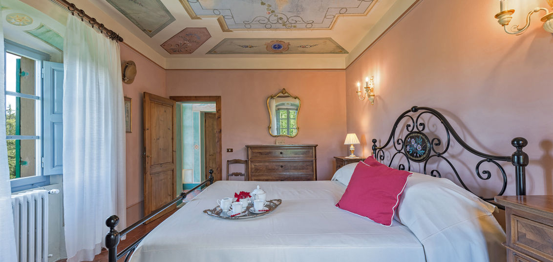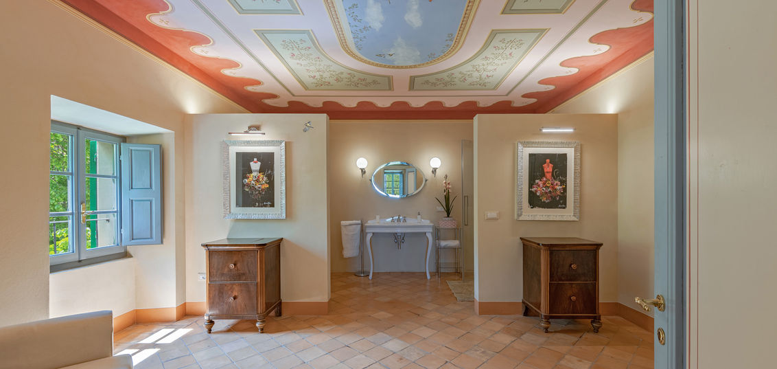 The Palazzo dates back to 1785 and on the inside one can breath the antique atmosphere as though time has stopped. Then the Palazzo was enlarged and the bedrooms and lounge rooms were decorated by a famous local artist, Luigi Puletti, a precursor of Liberty style. The villa, with private swimming pool is surrounded by 25 hectars of land with century old oaks, cypresses and pine trees through which a natural park has been created, so that the guests can admire the flora and fauna typical of this area of Tuscany.